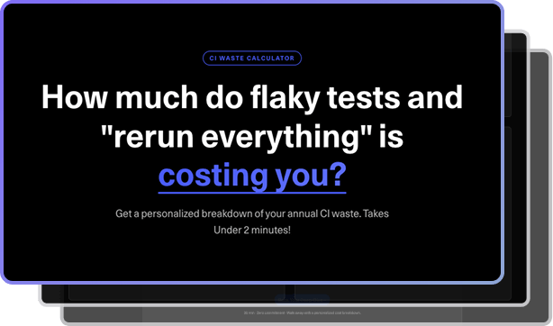 Flaky tests, overtesting, and unnecessary reruns drive up CI costs fast. Get a personalized estimate of your team’s annual CI waste in under 2 minutes.